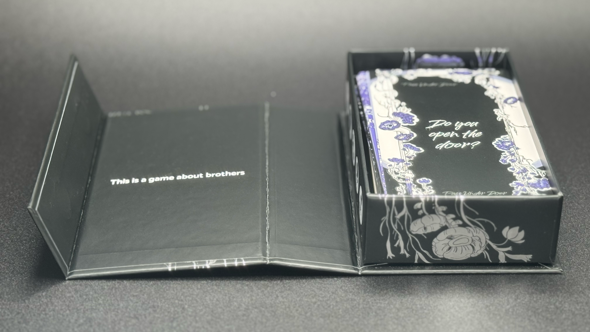 This two-player TTRPG guides you through the tragic and intimate story of two brothers and the final days before one of you turns. Take turns drawing cards, asking questions, and processing this change together. Once the door is closed, your story begins. In the end, it is up to the surviving brother: Do you open the door?