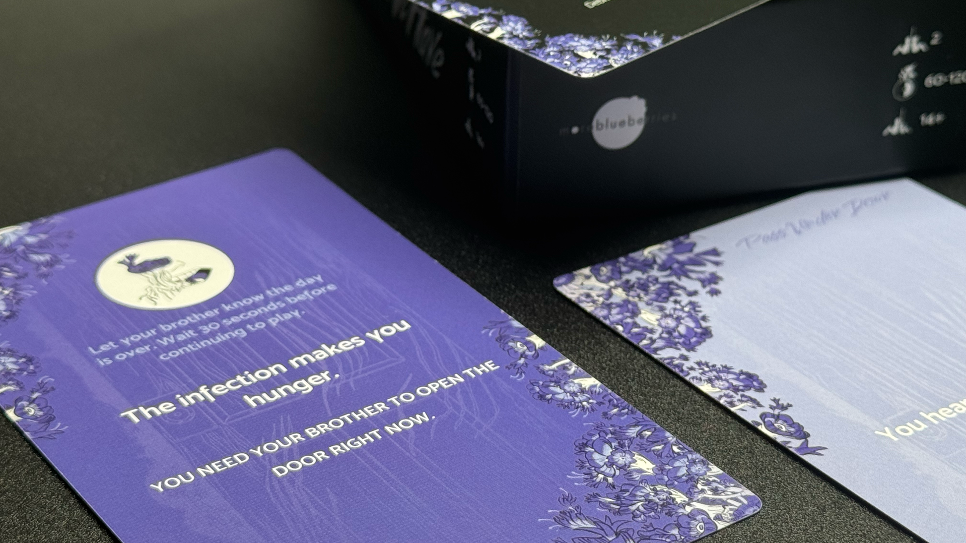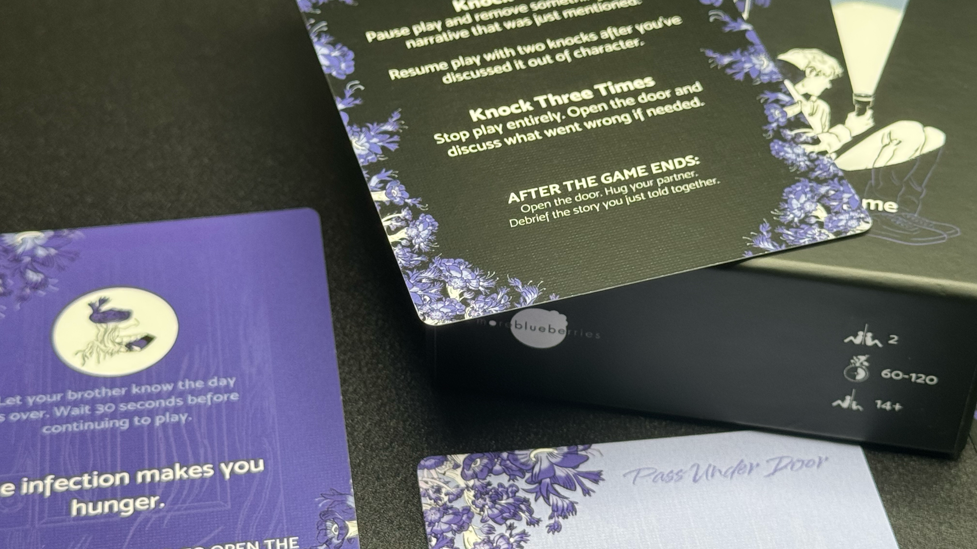 - 2 Safety Cards - Use the specially designed "Knock" system to ensure you can engage fully with this tragic game